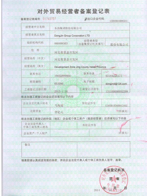 - 2015-11-12本公司成功注冊了“東勁”商標